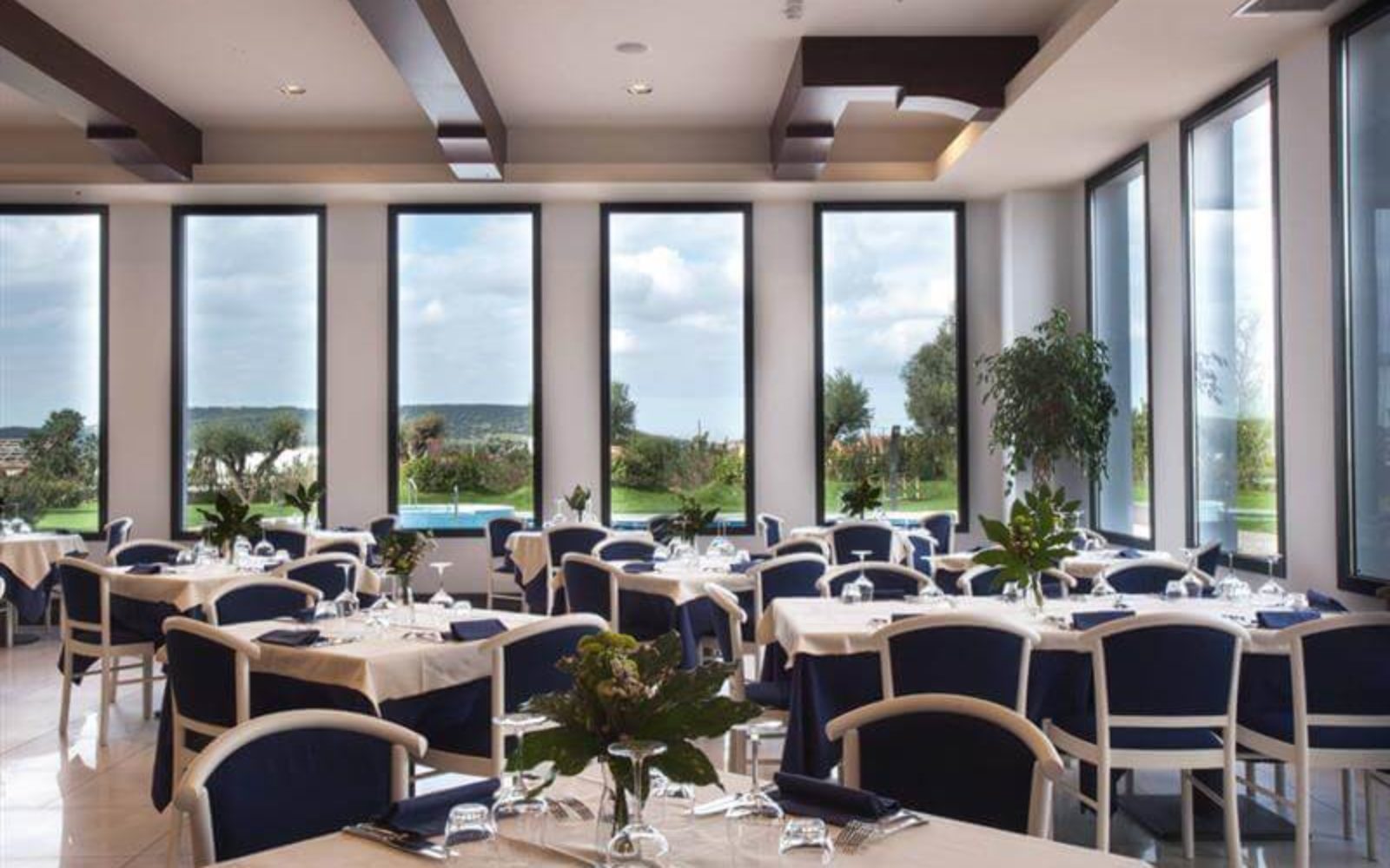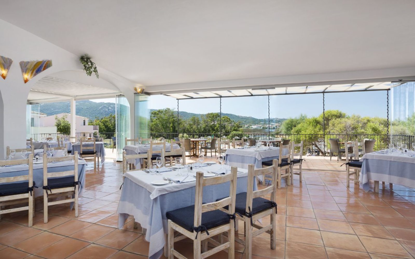 Situé dans le bâtiment principal, le restaurant de l’Hotel Airone à Baja Sardinia accueille les clients dans un environnement spacieux composé d’une salle intérieure et d’une grande véranda donnant directement sur la piscine et le golfe de Cannigione.