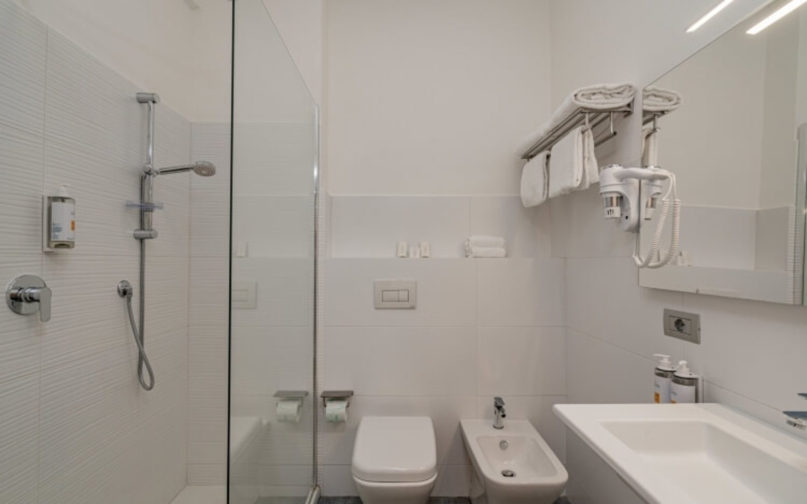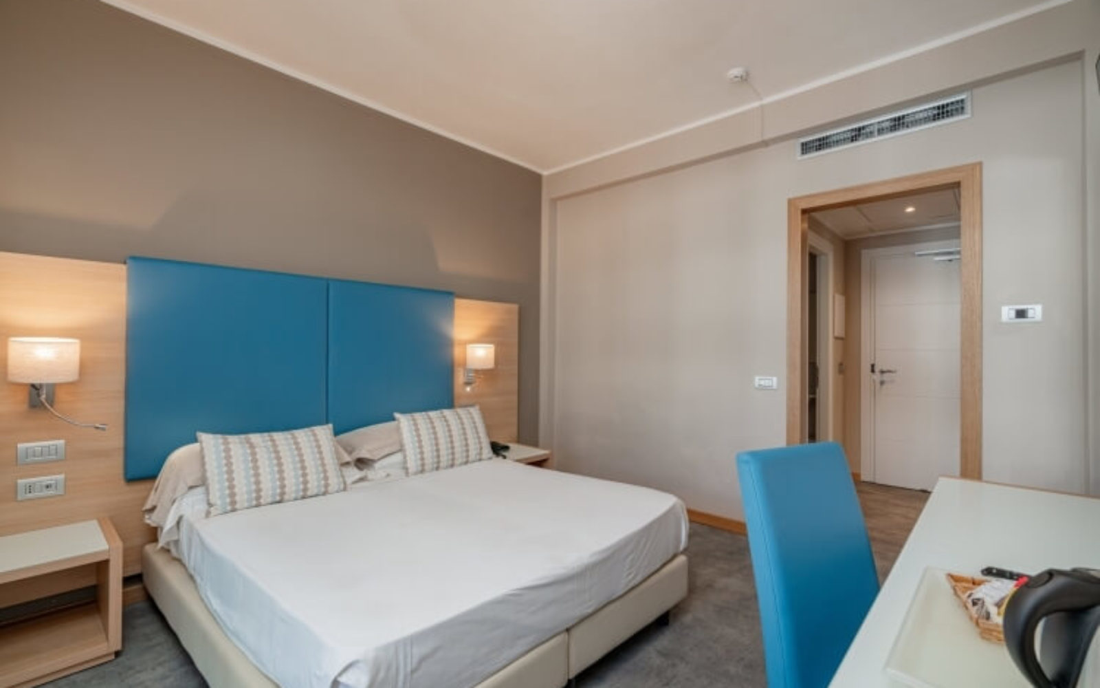 Entièrement rénové au printemps 2025, l’établissement propose différents types de chambres : doubles/twin, supérieures avec vue mer, familiales, suites et family suites.