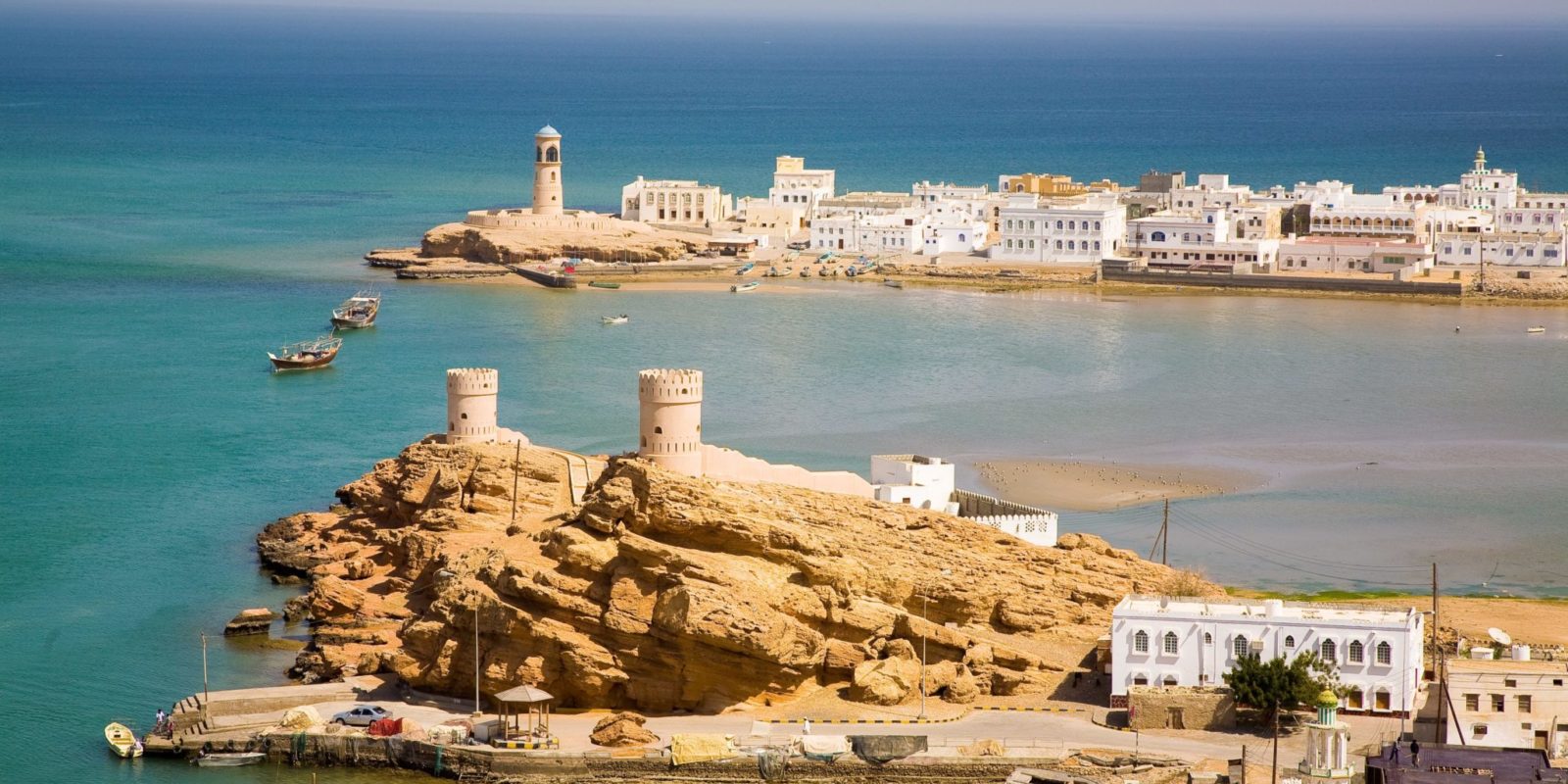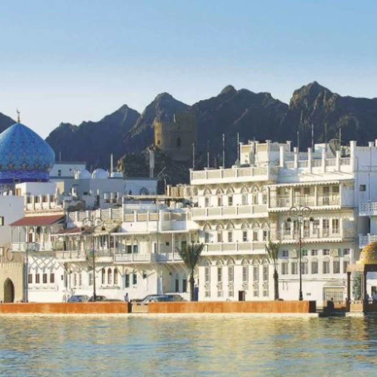 Vous bénéficierez également d’une vue panoramique sur le vieux port et la corniche de Mascate, un paysage emblématique de la ville où mer et montagnes se rencontrent.