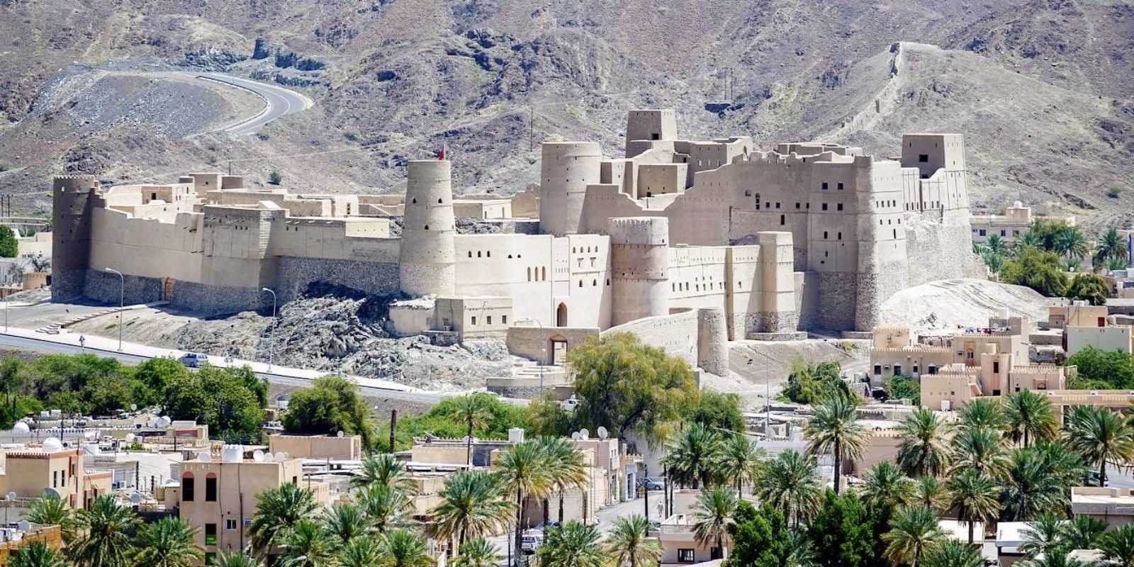 Route vers Nizwa (environ 25 minutes). Ancienne capitale du Sultanat d’Oman, Nizwa occupait une position stratégique, à la croisée des routes reliant Mascate, la région du Dhofar et les territoires bédouins de l’intérieur du pays.