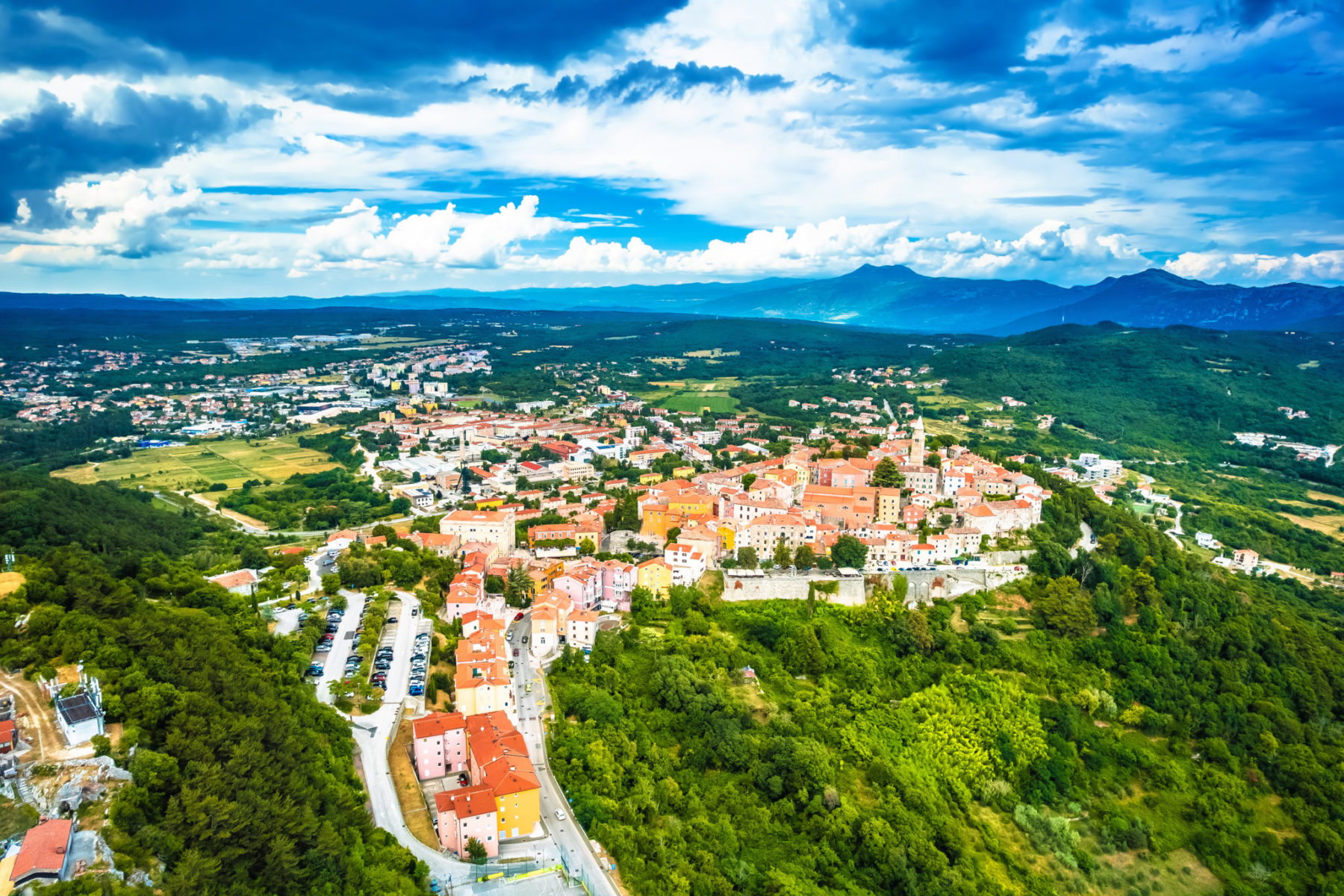 De Cres, nous partons pour la petite ville de Rabac sur le continent de l’Istrie. Rabac est surtout connu pour ses plages et ses installations de villégiature modernes. Pour aujourd’hui, nous laissons le bateau et explorons certaines des plus belles villes d’Istrie par bus ; De Rabac, nous partons pour Labin, à quelques minutes de route de Rabac. Ce village perché est l’un des villages médiévaux les mieux préservés et les plus beaux d’Istrie.