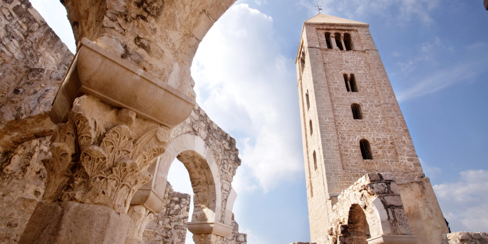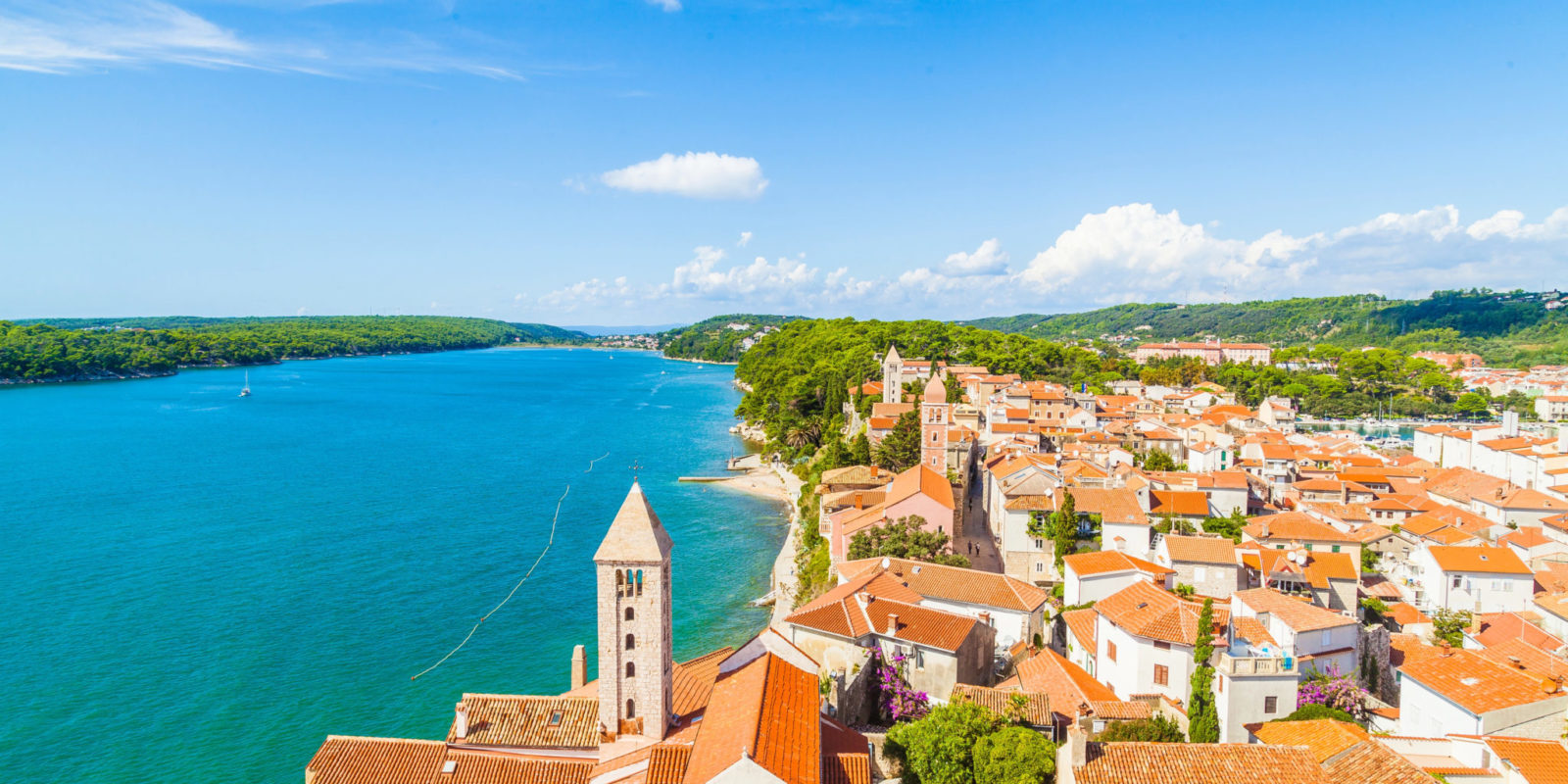 Visite guidée de Rab. Les petites rues médiévales étroites bordées de palais, d’églises et de monastères témoignent de plus de 2 000 ans d’histoire. La vieille ville de Rab, avec ses clochers caractéristiques, s’étend sur un promontoire rocheux étroit, entouré d’eau sur deux côtés.