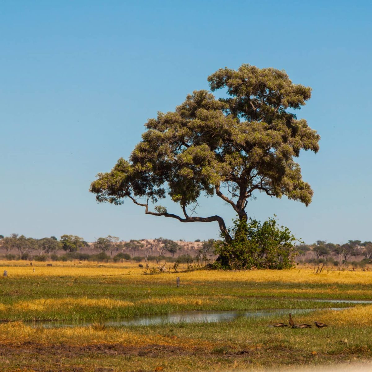 Savuti est une zone désertique malgré la présence de la rivière du même nom. Cette rivière fut asséchée pendant plus de 30 ans. En 2010, elle s’est remise en eau pour une durée de 3 ans, ce qui a profondément modifié la vie sauvage. La rivière rejoint les marais, la végétation et la faune y sont donc devenus riches, variés et prolifiques.