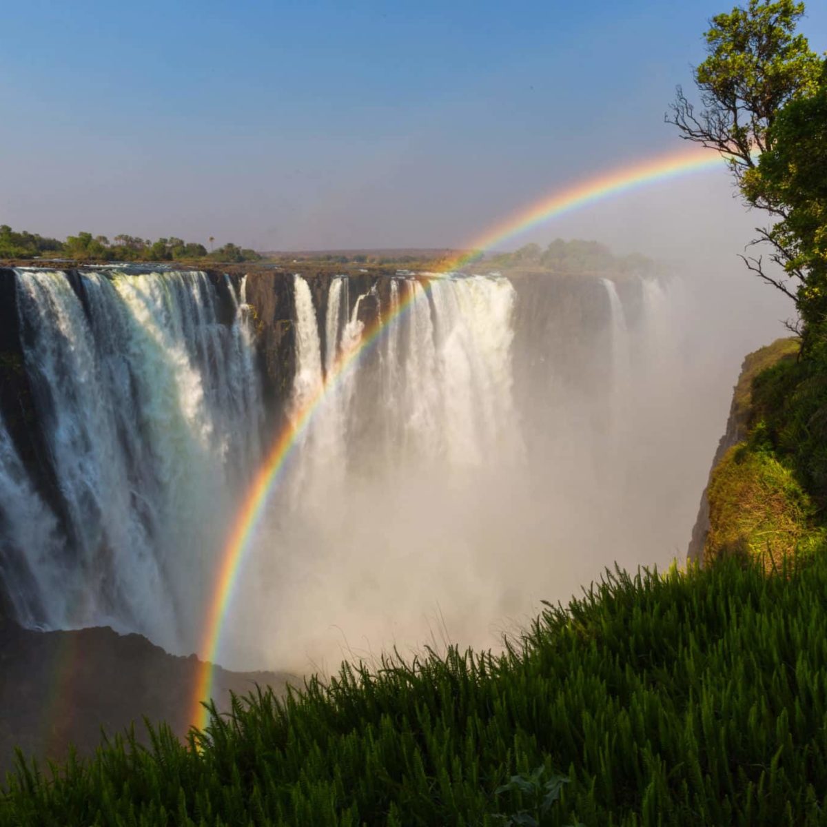 A la frontière entre le Zimbabwe et la Zambie, le fleuve du Zambèze se jette sur plus de 100 mètres de haut et 1,7km de largeur à un débit de 250 millions de litres d’eau par minute !