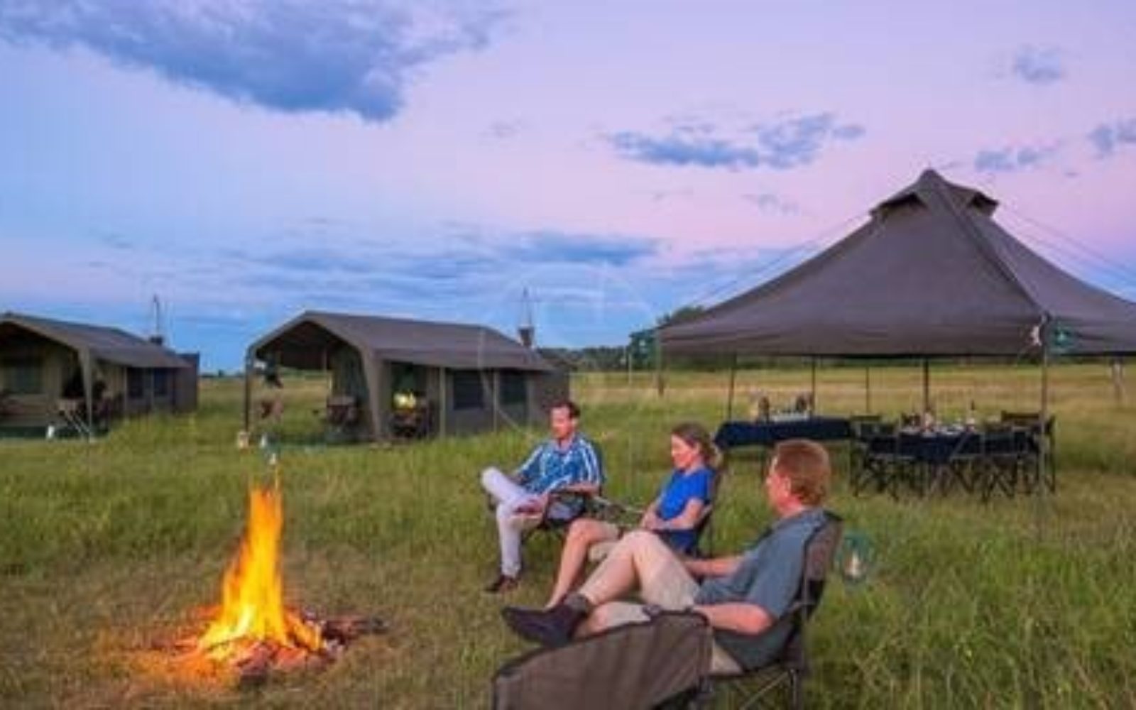 De retour au camp, vous pouvez profiter d’une douche chaude, puis vous relaxer autour du feu de camp et savourer un bon dîner, avant de rejoindre votre tente pour une première nuit aux sons de la brousse.