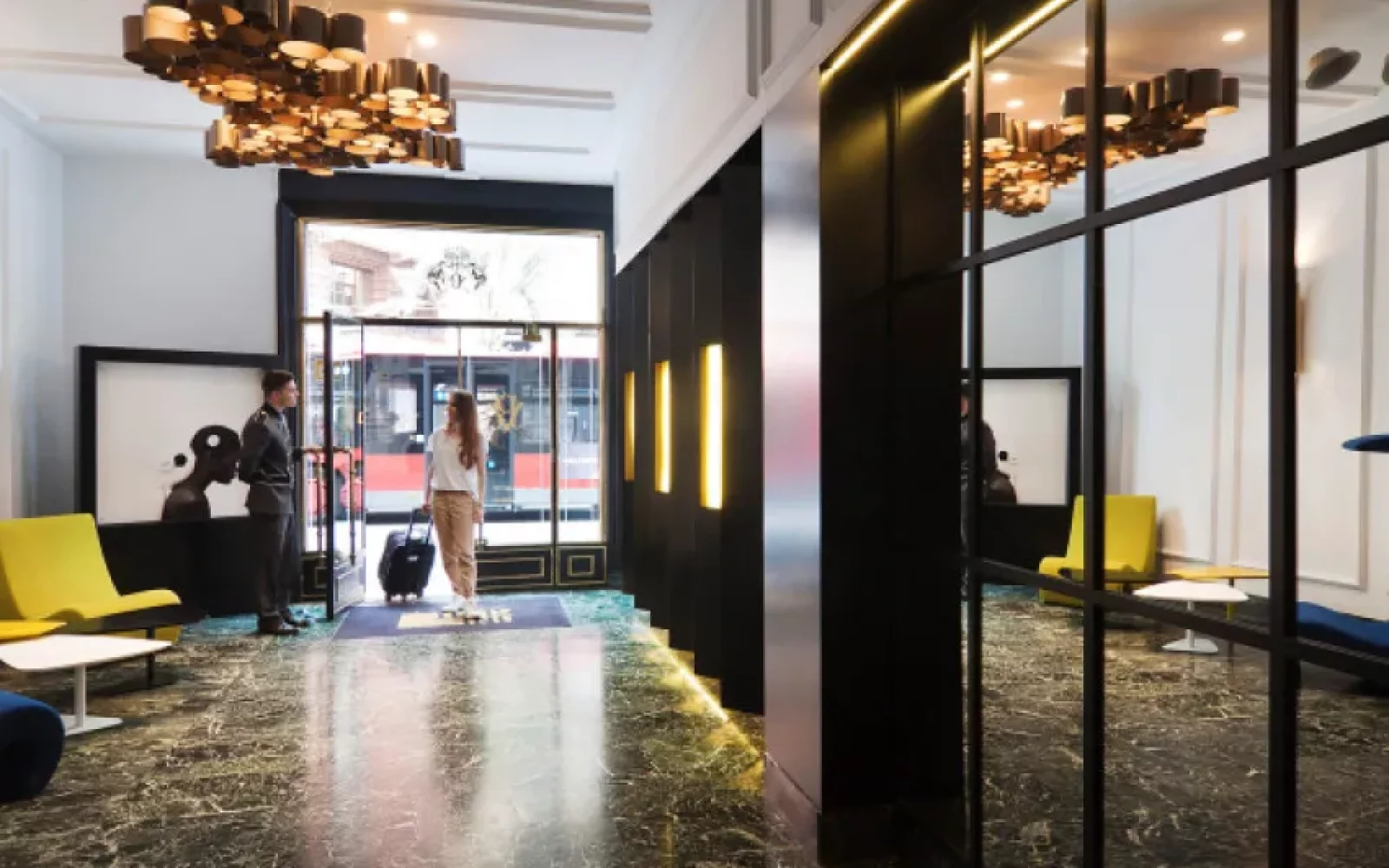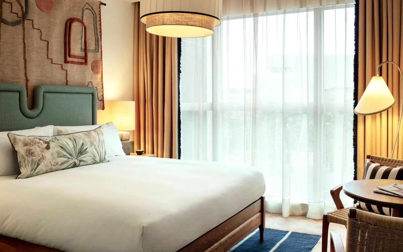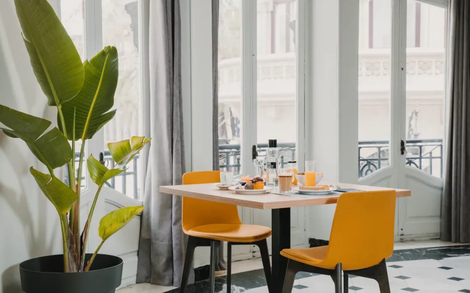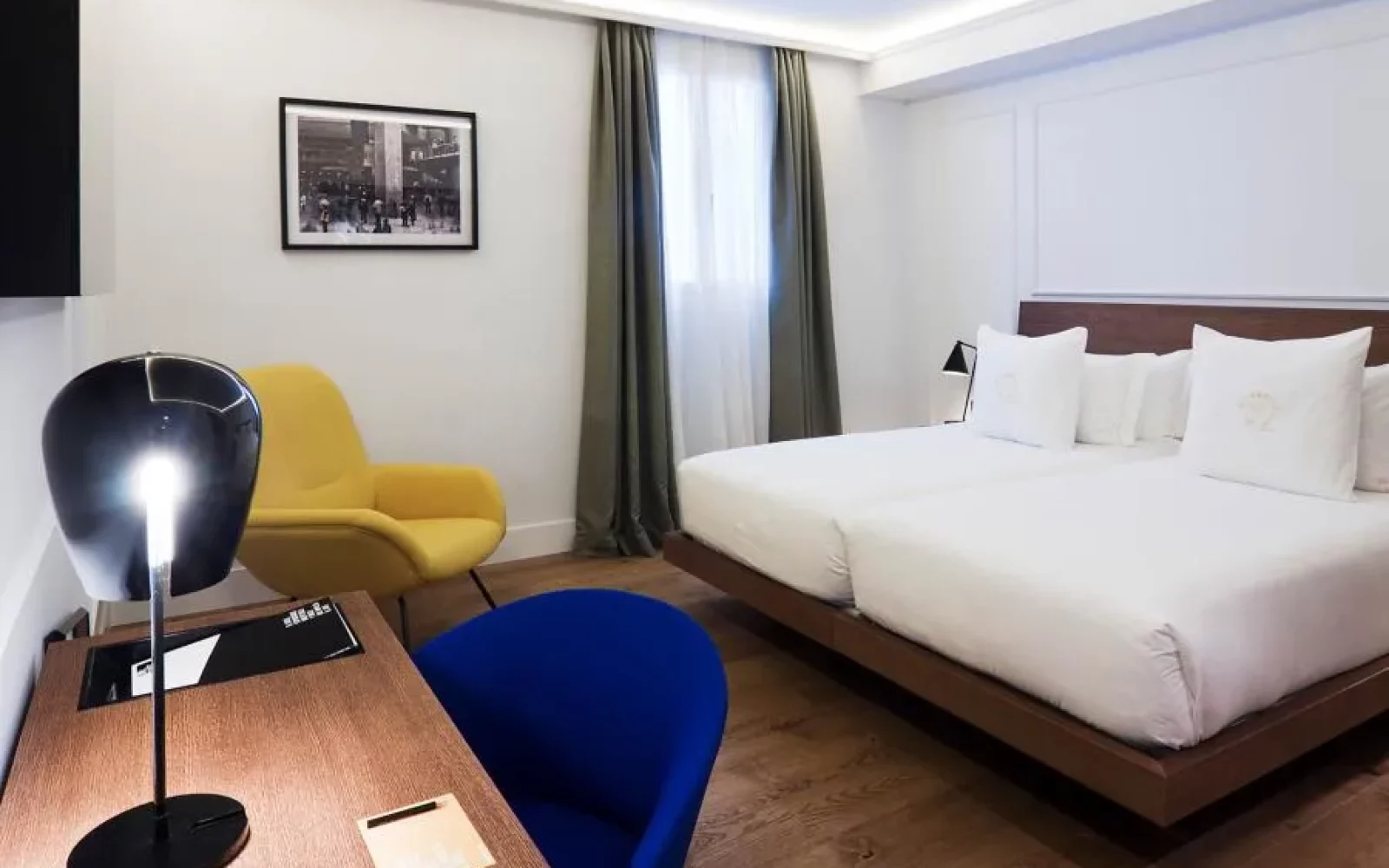 Depuis les meubles conçus exclusivement pour l’hôtel jusqu’aux motifs de céramique traditionnelle qui décorent les espaces, chaque détail célèbre la richesse culturelle de Valence. Les tons moutarde, verts et bleus qui habillent les intérieurs reflètent non seulement une esthétique moderne, mais aussi l’essence chaleureuse et lumineuse de la ville