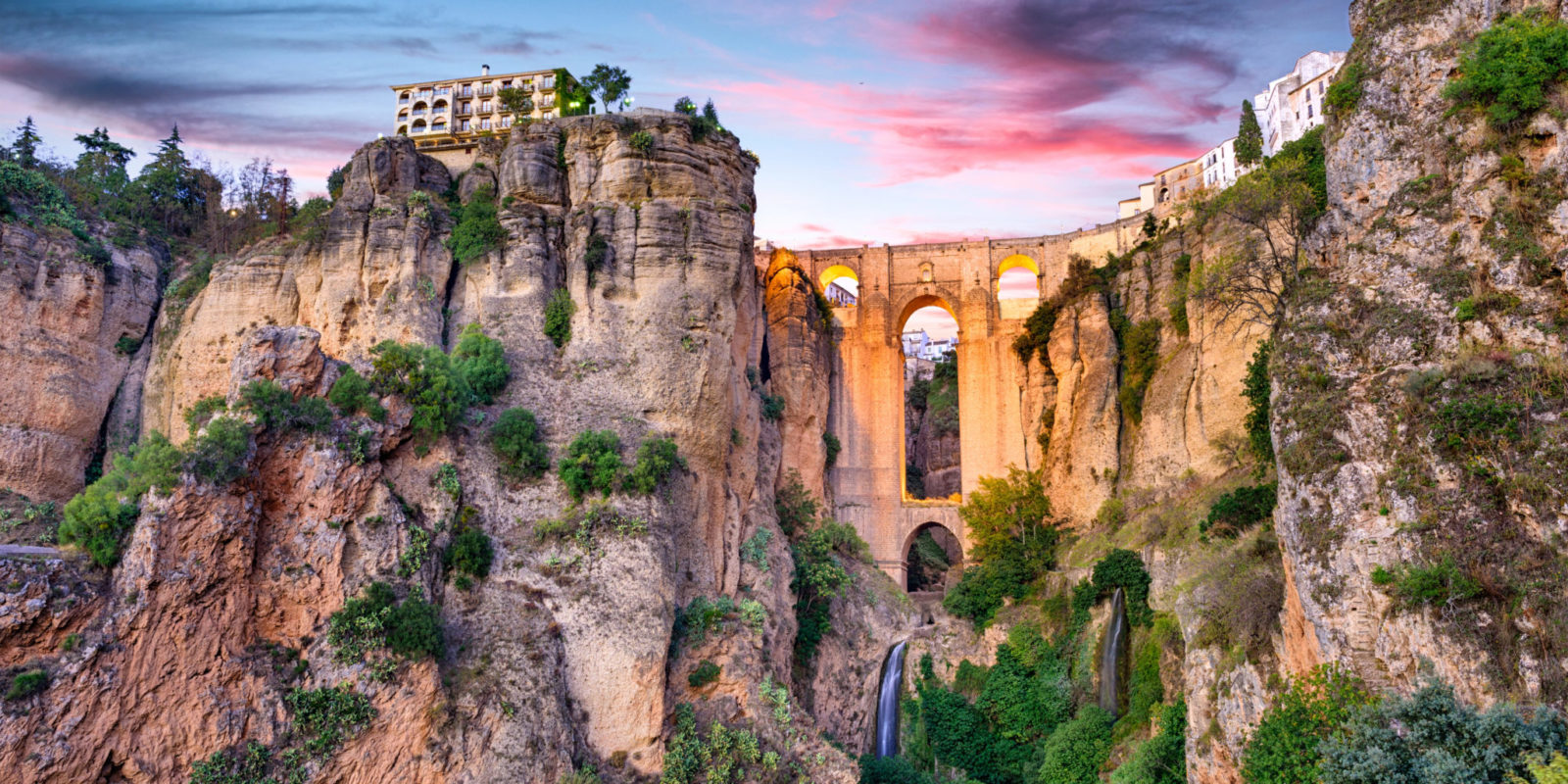 Ronda, l’un des célèbres villages blancs d’Andalousie, est perchée au sommet d’un rocher creusé par l’érosion du fleuve Guadalevín. Son emblématique Pont Neuf, majestueux ouvrage en pierre, enjambe la gorge spectaculaire du Tajo et offre des vues imprenables sur la région.