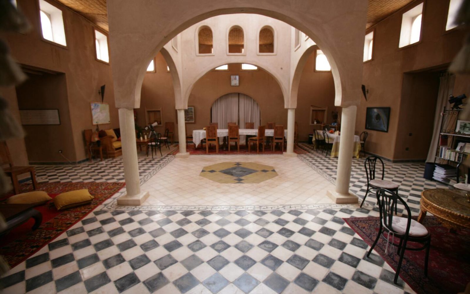 Dans l’oasis de Tighmert, nichée dans une palmeraie, voici une maison d’hôtes paisible construite en pisé, dans le respect de l’architecture locale. Entourée de jardins et d’allées bordées de palmiers, elle offre un cadre propice à la déconnexion.