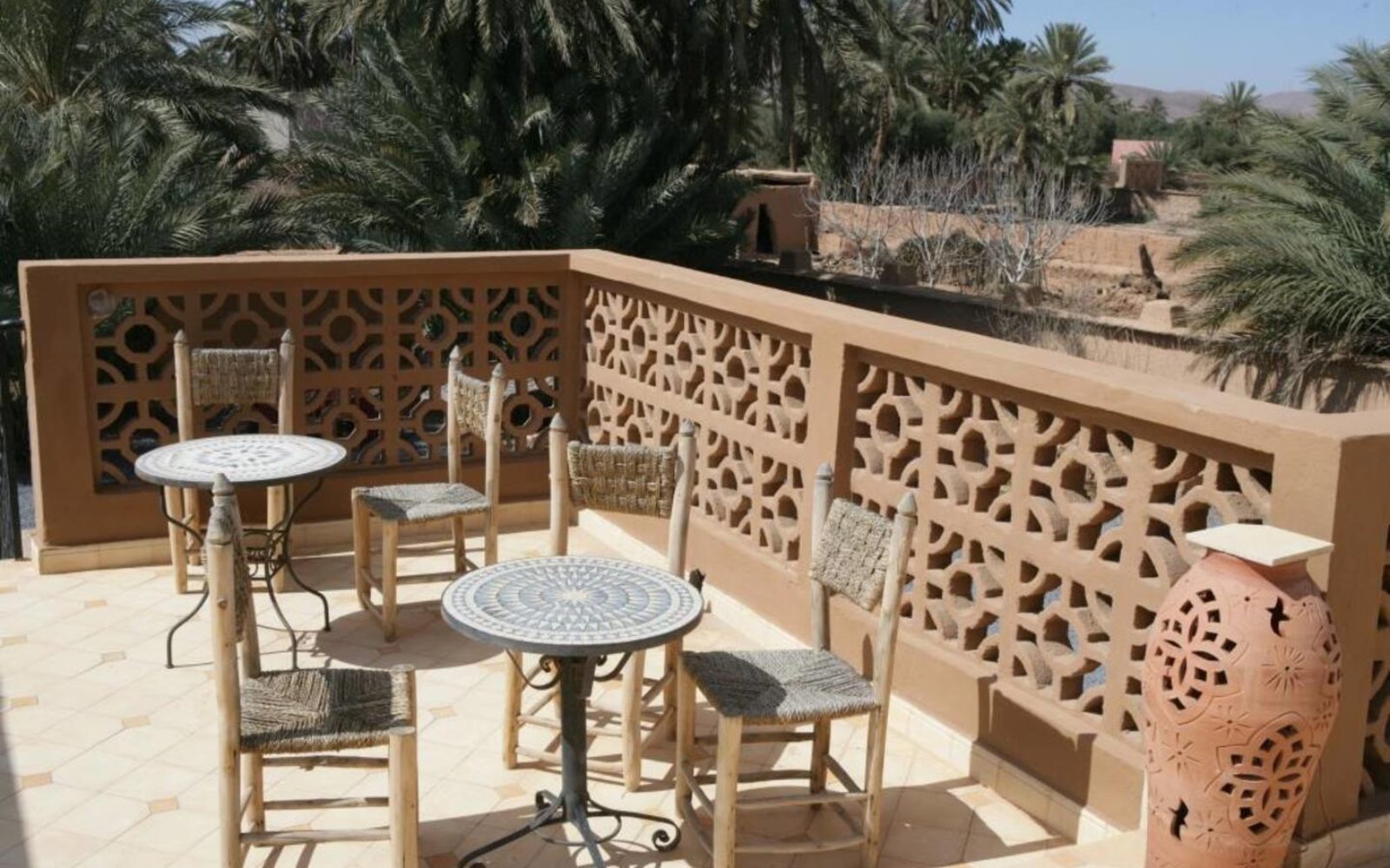 Les chambres, simples et lumineuses, sont décorées dans un esprit sobre et authentique. Profitez d’un thé à la menthe servi sur la terrasse, avec une vue sur la palmeraie.