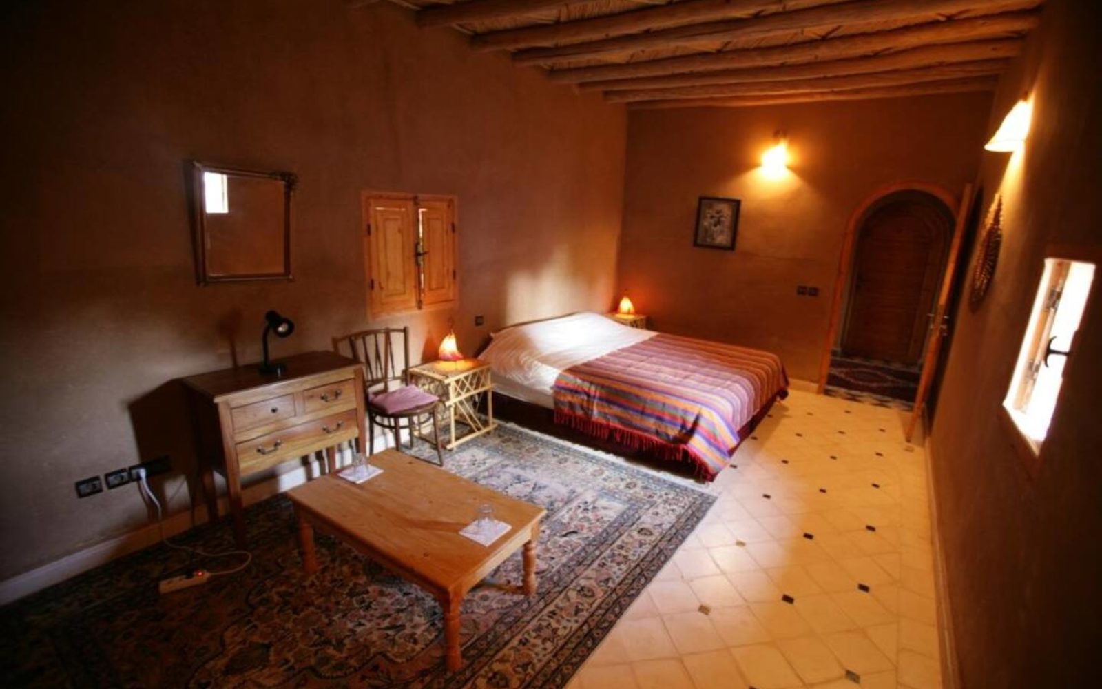Dîner et nuit à l’hôtel, situé à Tamnougalt proche de l’Oued Draa (15min du village de Agdz).Chambre Standard.