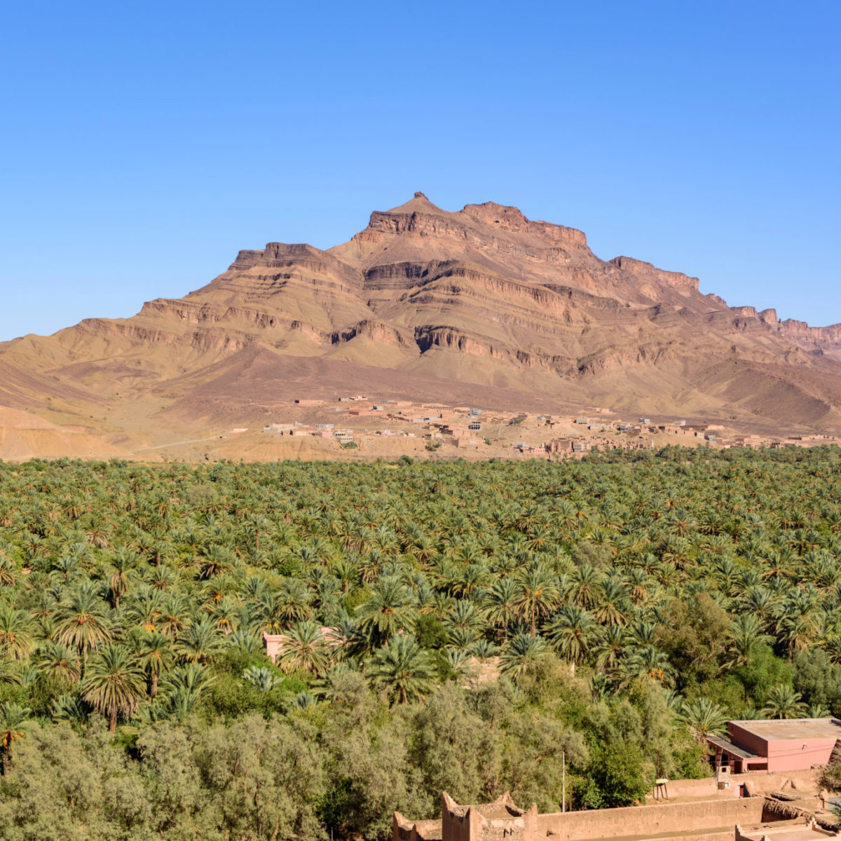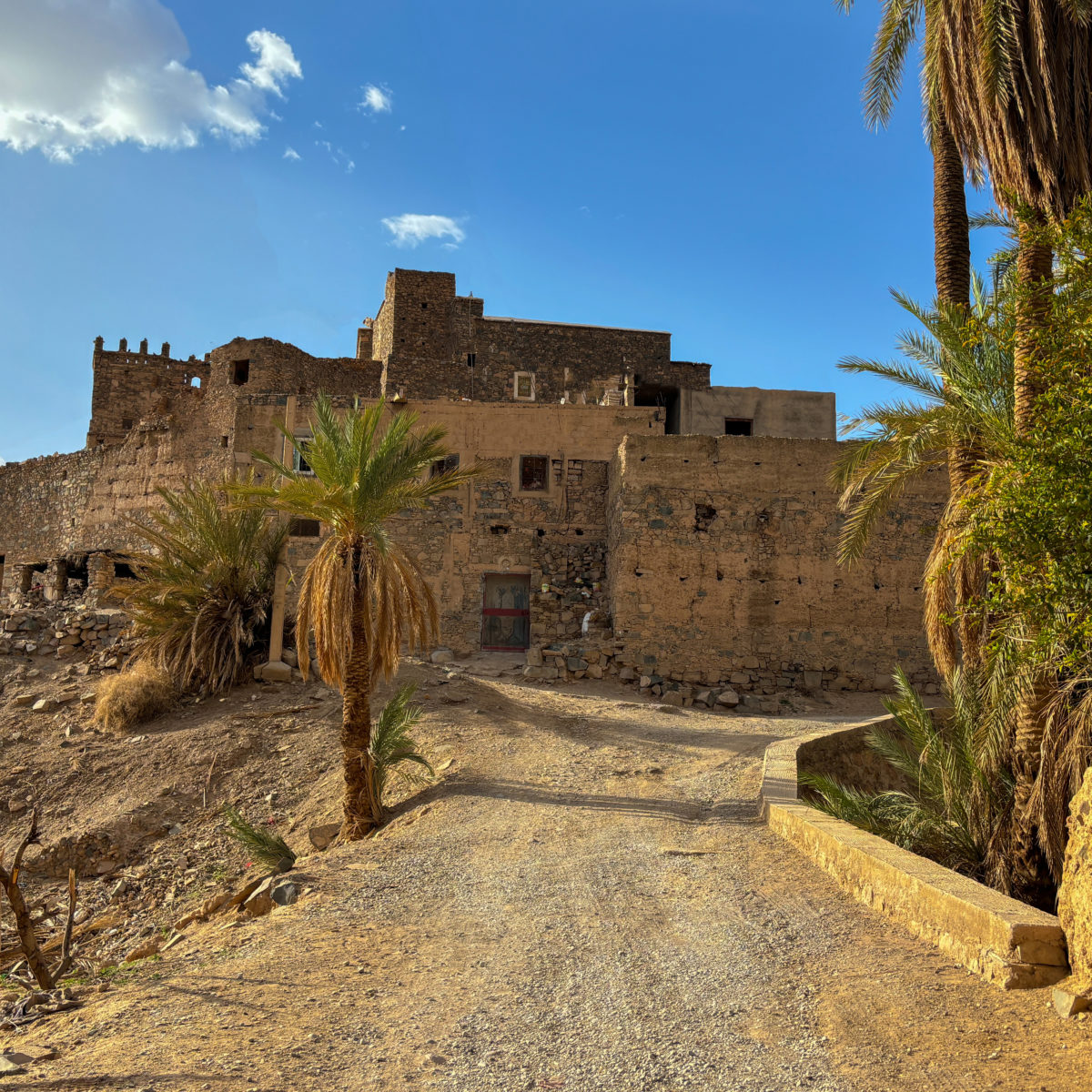 Bâtie au pied de la montagne, Agdz marque le point de départ de la plus belle partie de la vallée du Draa, notamment reconnue pour sa grande palmeraie. Partons pour une journée à la découverte de cette oasis de tranquillité surplombée par la Jbel Kissane, montagne culminant à 1600 mètres d’altitude. Nous enfilons nos chaussures pour initier une marche qui nous emmène au milieu de la vie locale de la palmeraie. Les habitants viennent et repartent, ils entretiennent leur parcelle et l’irriguent. La route qui traverse la palmeraie était autrefois le chemin des caravaniers. Nous l’empruntons aussi, comme si nous marchions dans les pas d’un peuple chargé d’histoire.