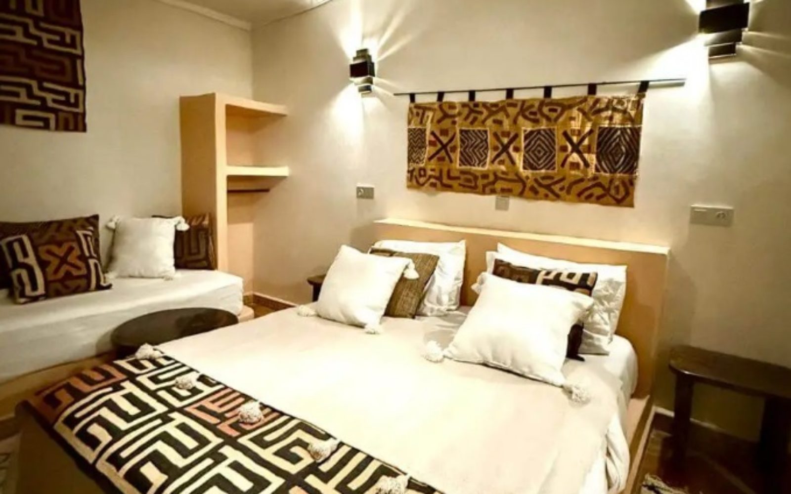 Les chambres luxueuses d’un style berbère et géométrique vous font sentir comme dans un cocon.