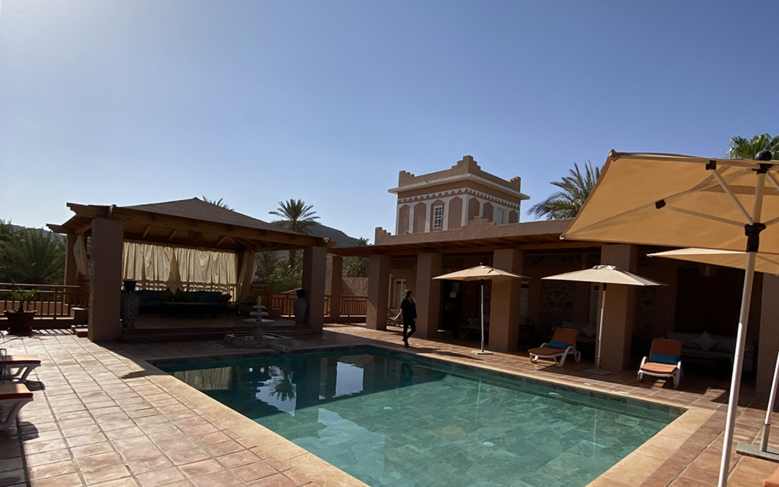 Les chambres, aux plafonds en bois et murs d’argile, allient simplicité, fraîcheur et confort, avec une décoration sobre inspirée des tons du désert. Détendez-vous au bord de la piscine et laissez-vous séduire par l’ambiance calme de ce cocon.